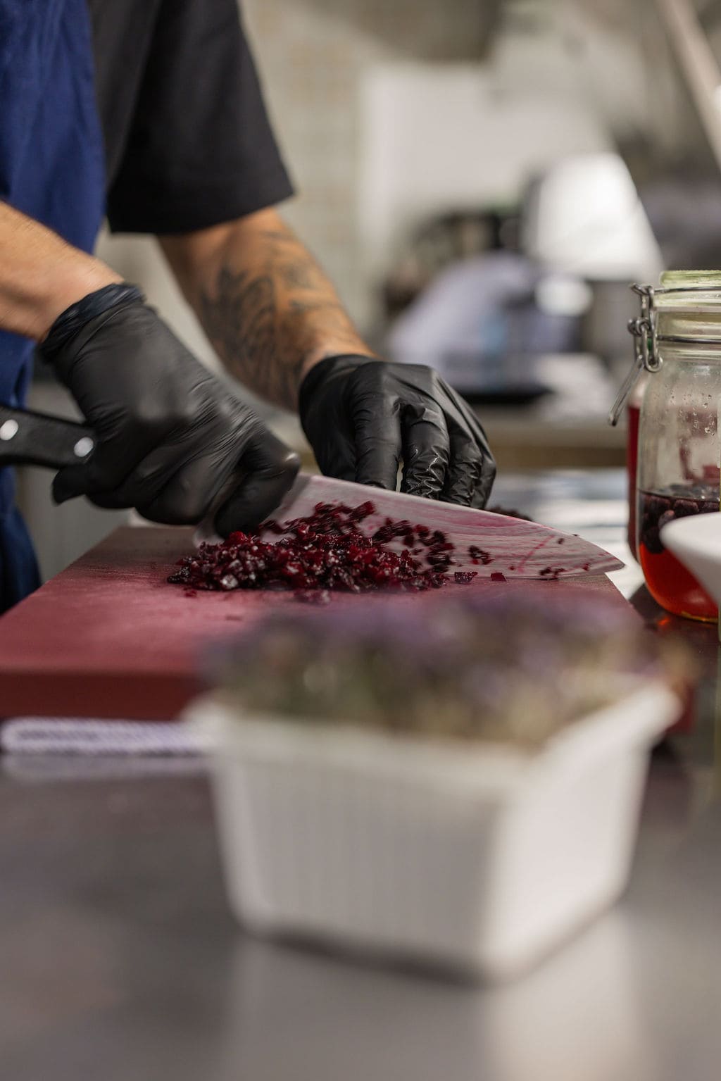 Dry Aged rdeča pesa z ribezom I gorčična kreša