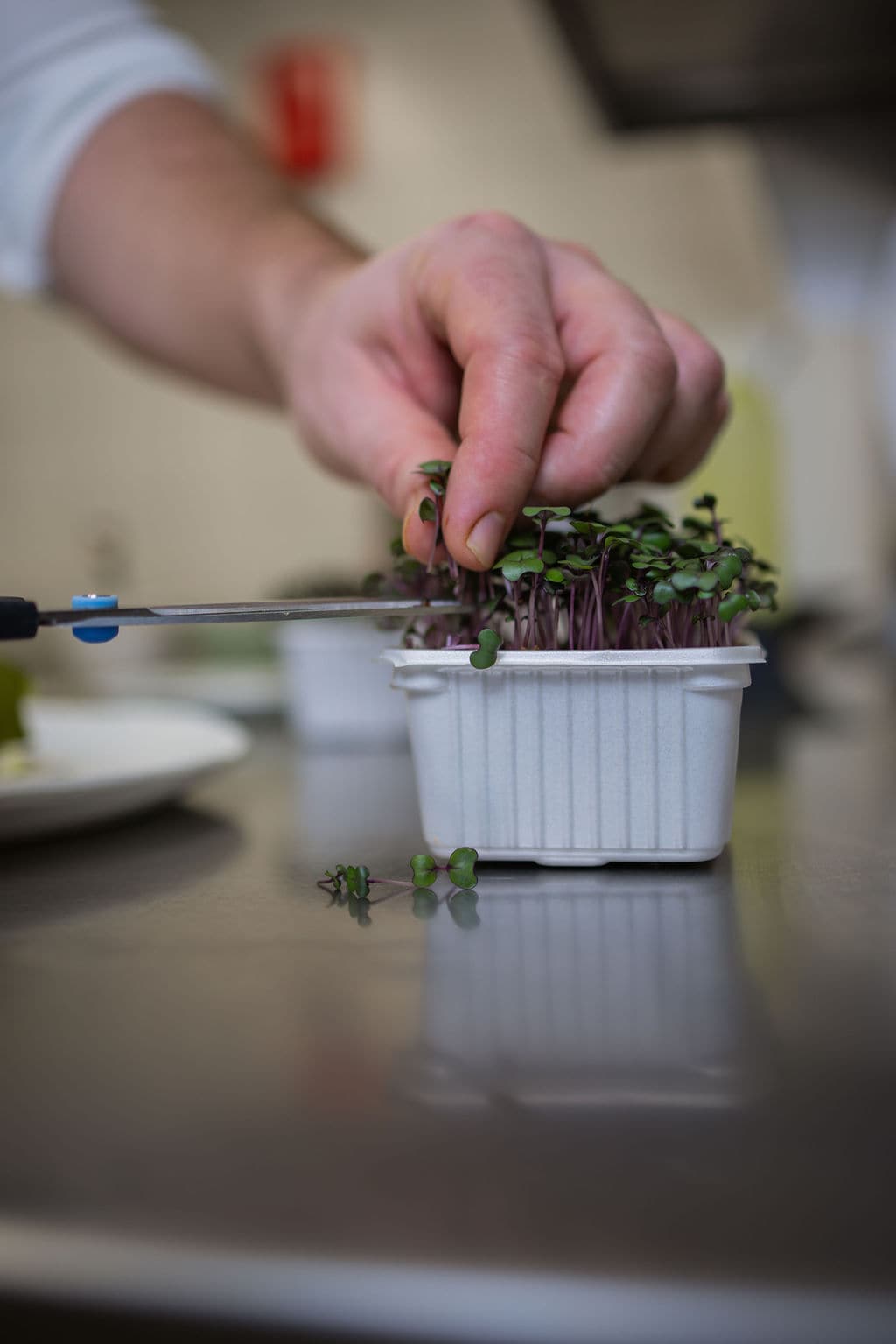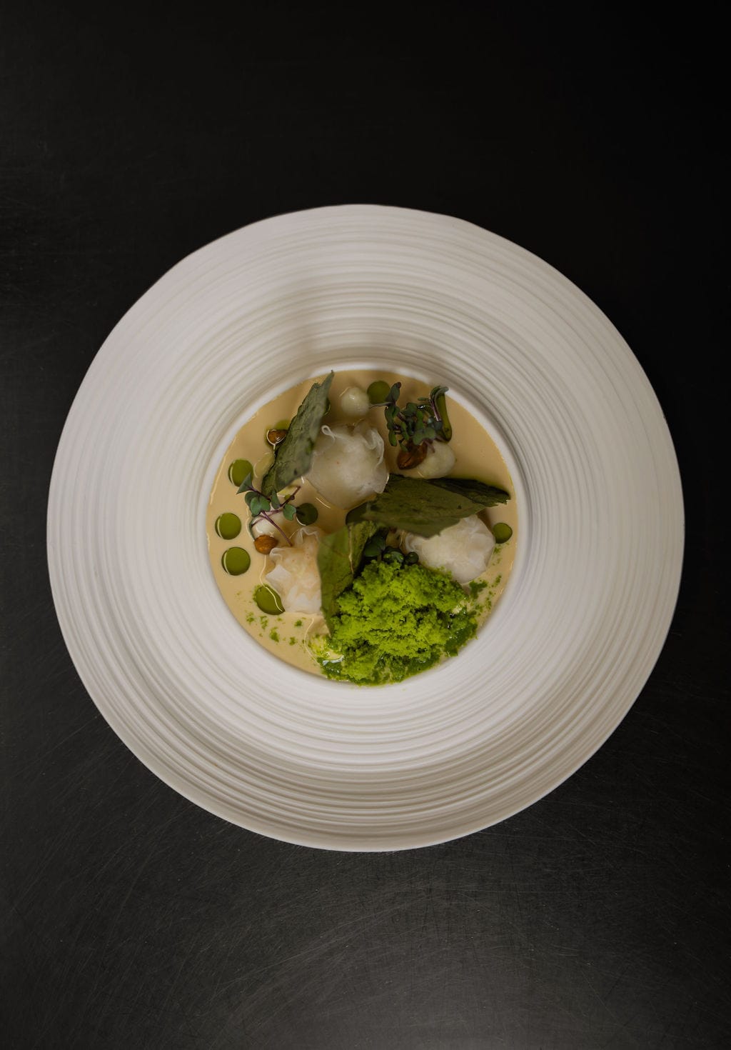 An diesem Punkt berührt sich seine Arbeit mit Herbeus Greens. Die Greens erscheinen auf seinen Tellern nicht als Deko, nicht als grüner Schlusspunkt, den man aus Gewohnheit setzt. Sie sind ein Eingriff. Ein Blatt, das Frische verlängert. Eine junge Triebspitze, die einem Gericht Richtung gibt, bevor es sich verliert. In einer Küche, die so stark über Stimmigkeit funktioniert, ist genau diese Präzision entscheidend.