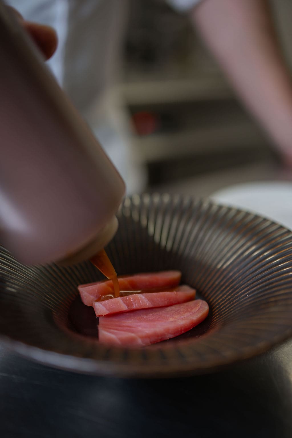 Die Säure der Ponzu zieht den Thunfisch aus sich heraus, ohne ihn zu überwältigen.